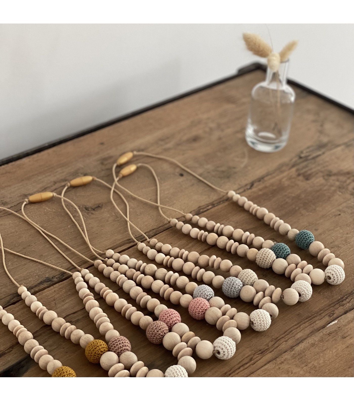 Ce collier d'allaitement saura épargner vos cheveux ou encore votre cou des petites griffes de votre bébé. Premier jouet d'éveil de votre enfant, ce collier affinera la motricité de votre bébé grâce au mélange des perles en bois de taille, de texture et de couleurs.