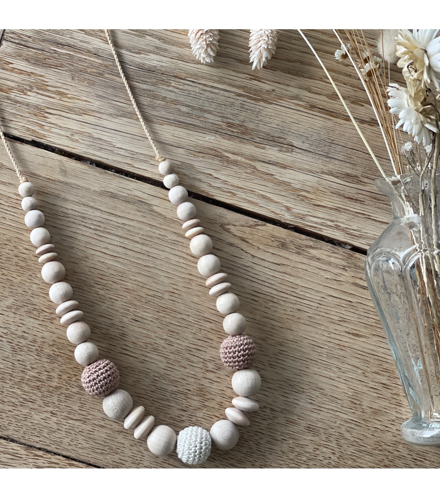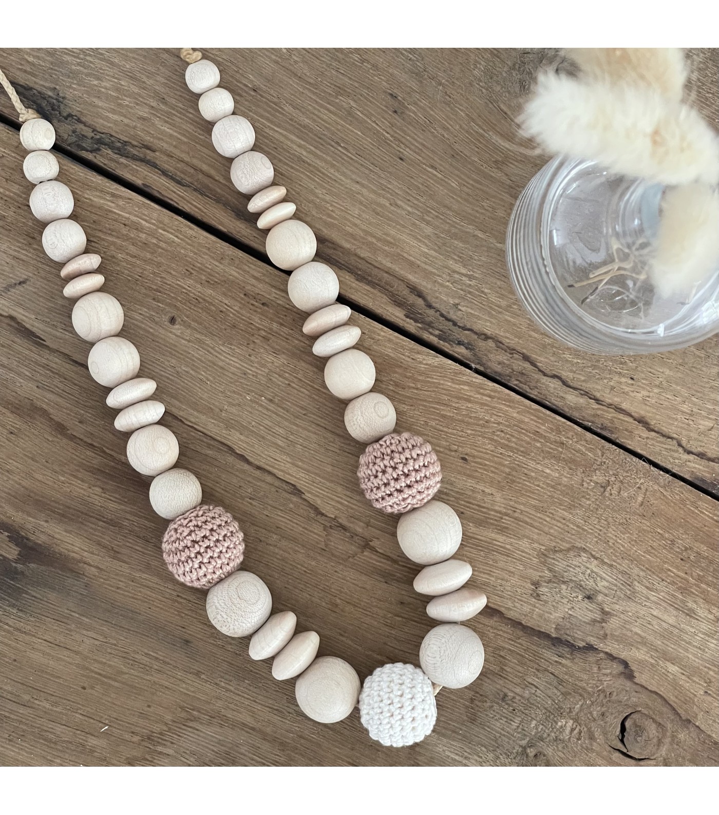 Ce collier d'allaitement plaît autant aux bébés qu'aux mamans car c'est un bijou naturel, réalisé à partir d'une chaîne en tissu et de perles en bois et en coton, et permet d'assurer une tétée en toute tranquillité. Conçu pour accompagner votre enfant de la naissance jusqu'à ses 3 ans, il s'adapte aux différentes étapes de son développement.