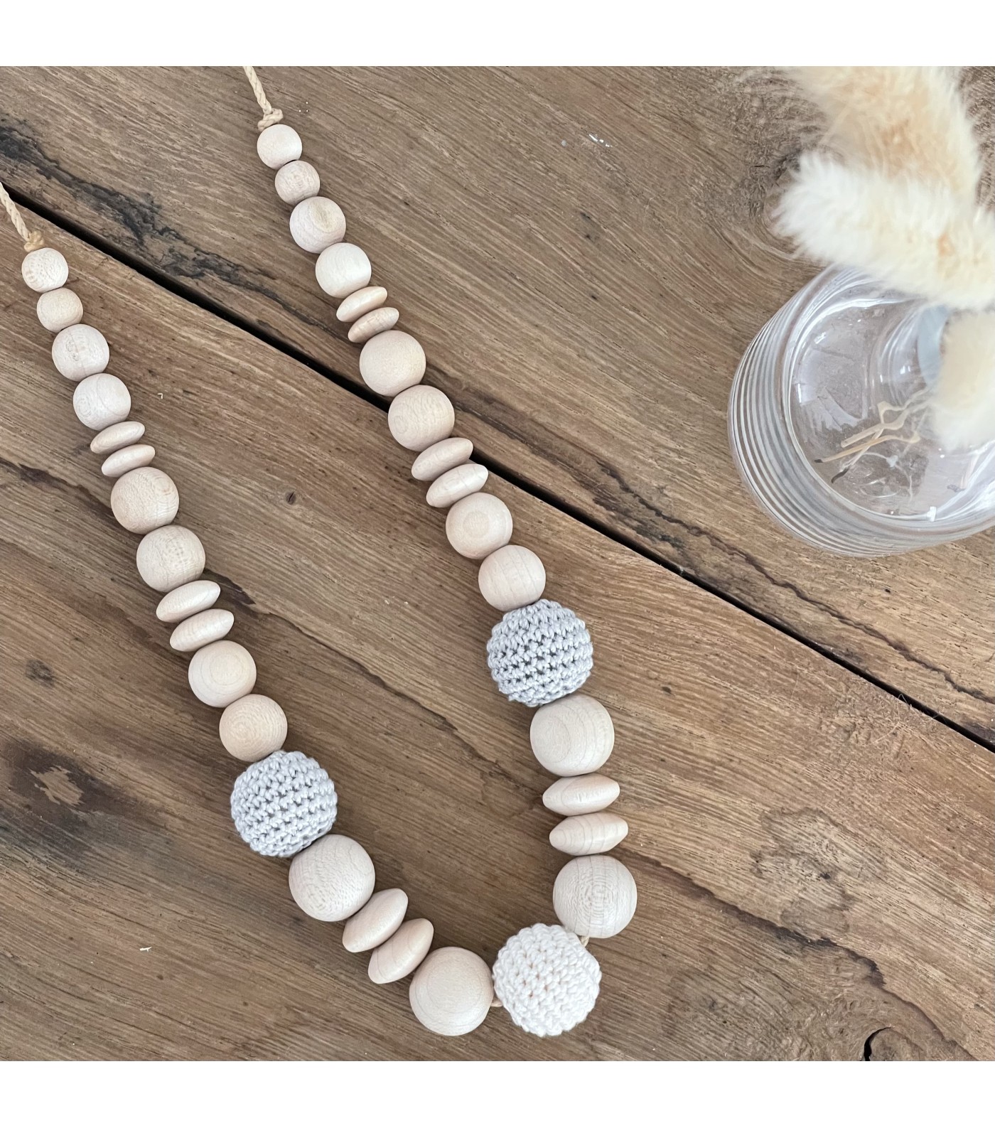 Les perles en bois du collier d'allaitement gris combinent solidité et durabilité. Elles résistent aux explorations animées de votre bébé, préservant ainsi leur forme et leur intégrité au fil du temps.
