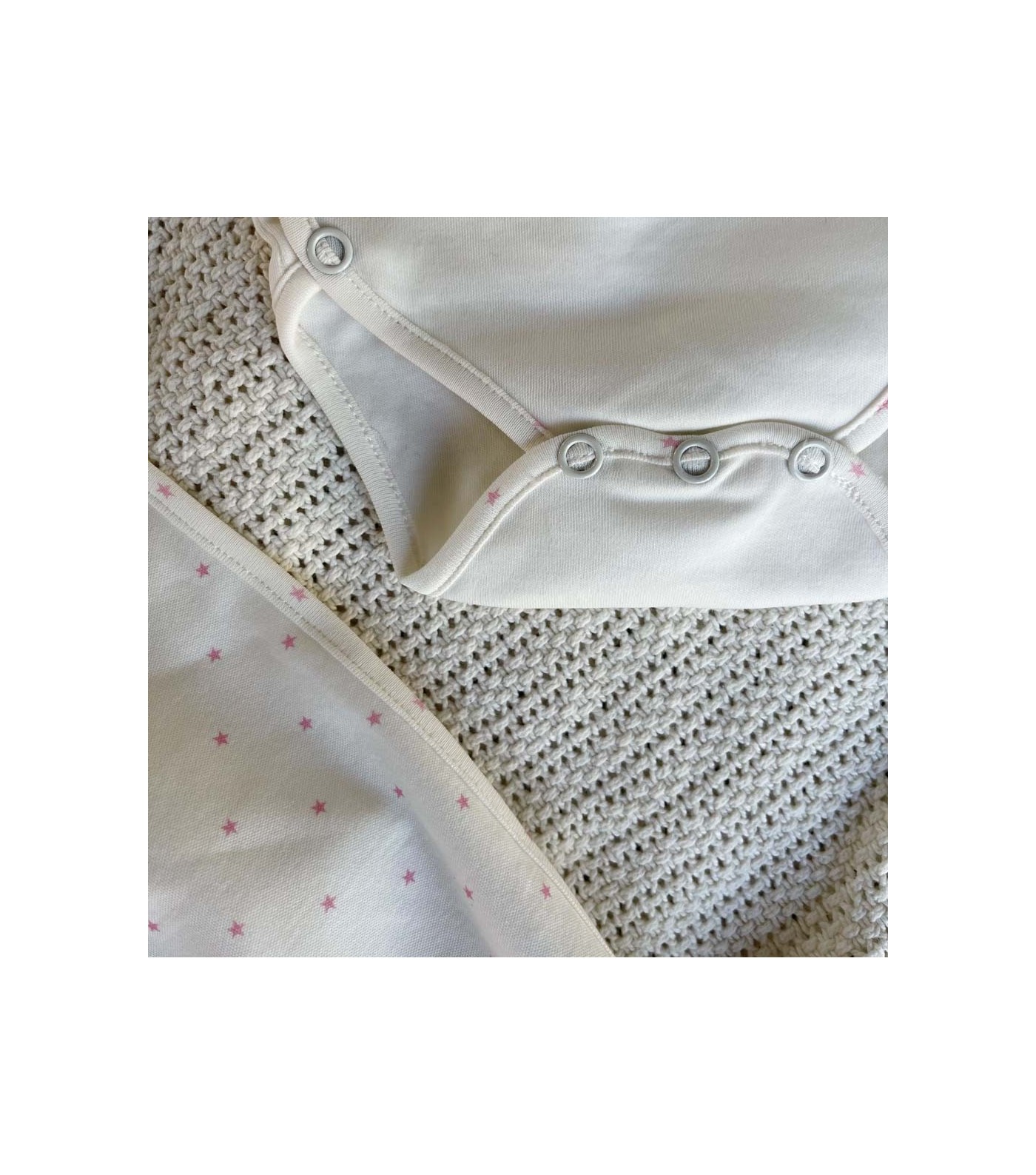 Consultez notre guide des taille pour choisir la taille parfaite de ce Body Bébé Bio Manches Longues Étoiles Rose.