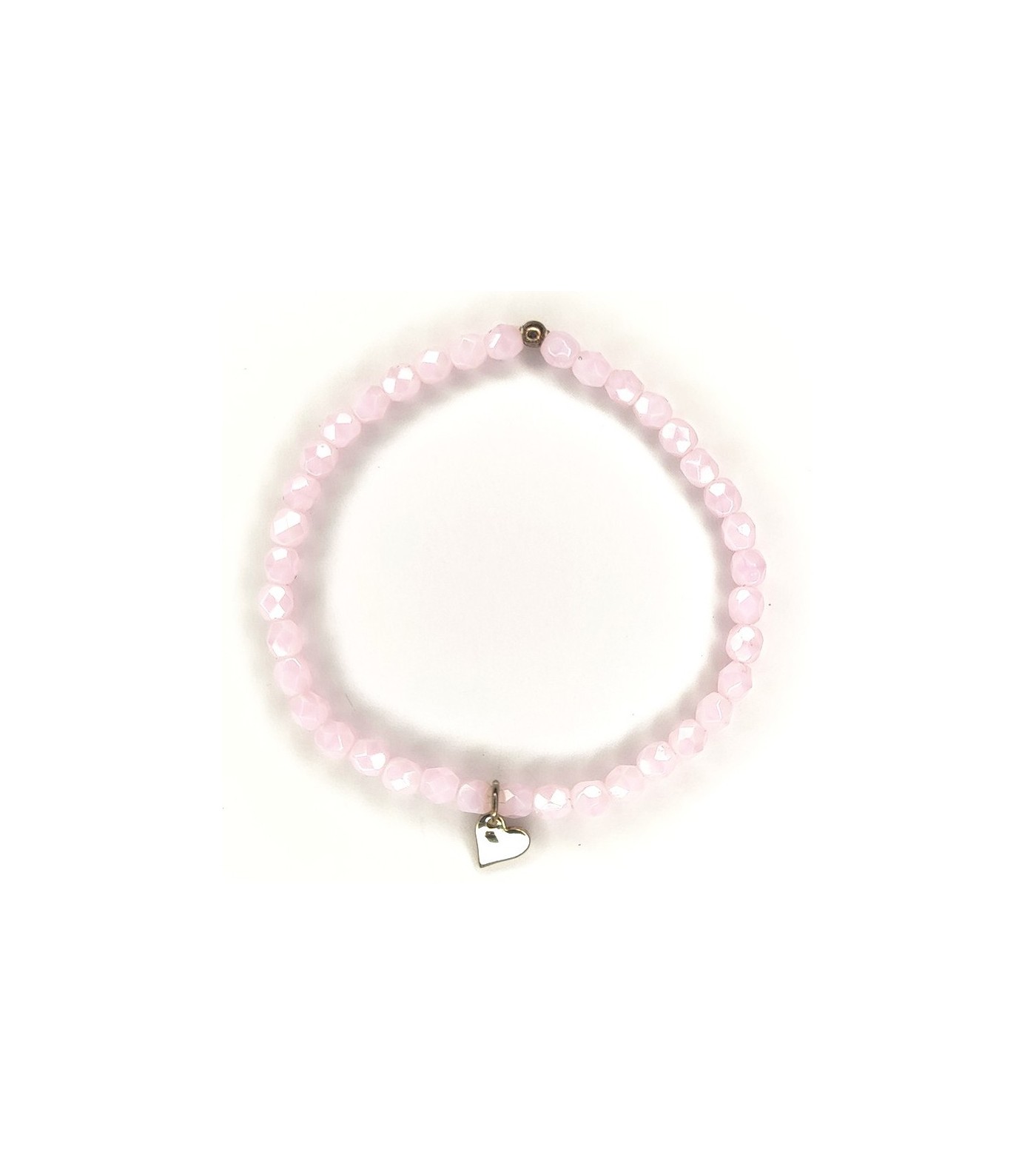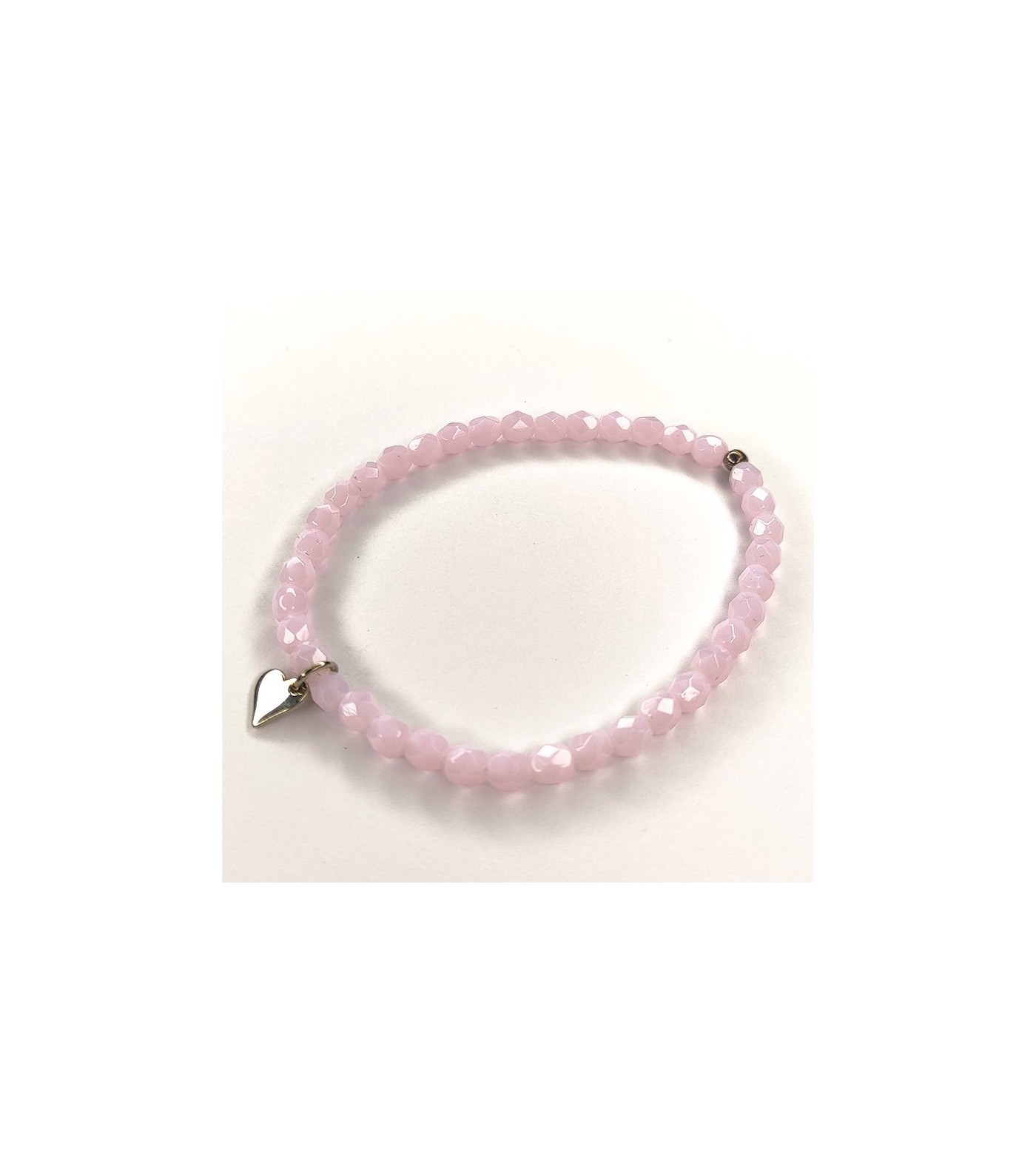 Joli bracelet en perles de cristal rose, avec son petit coeur en argent soudé.