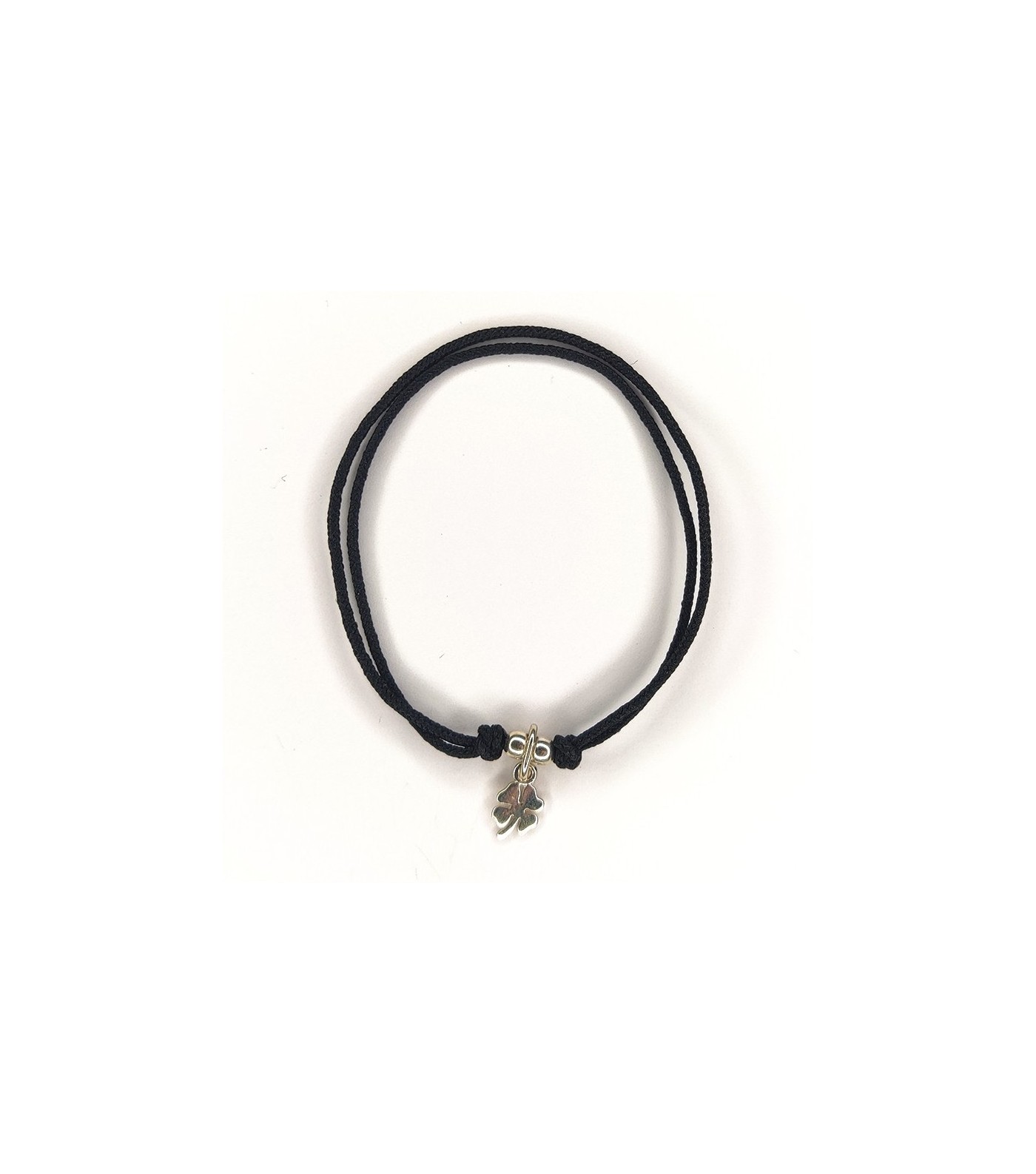 Offrez ce joli bijou pour fêter une naissance. Bracelet bébé au cordon noir et son trèfle en argent.