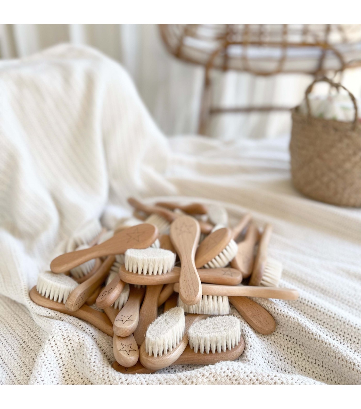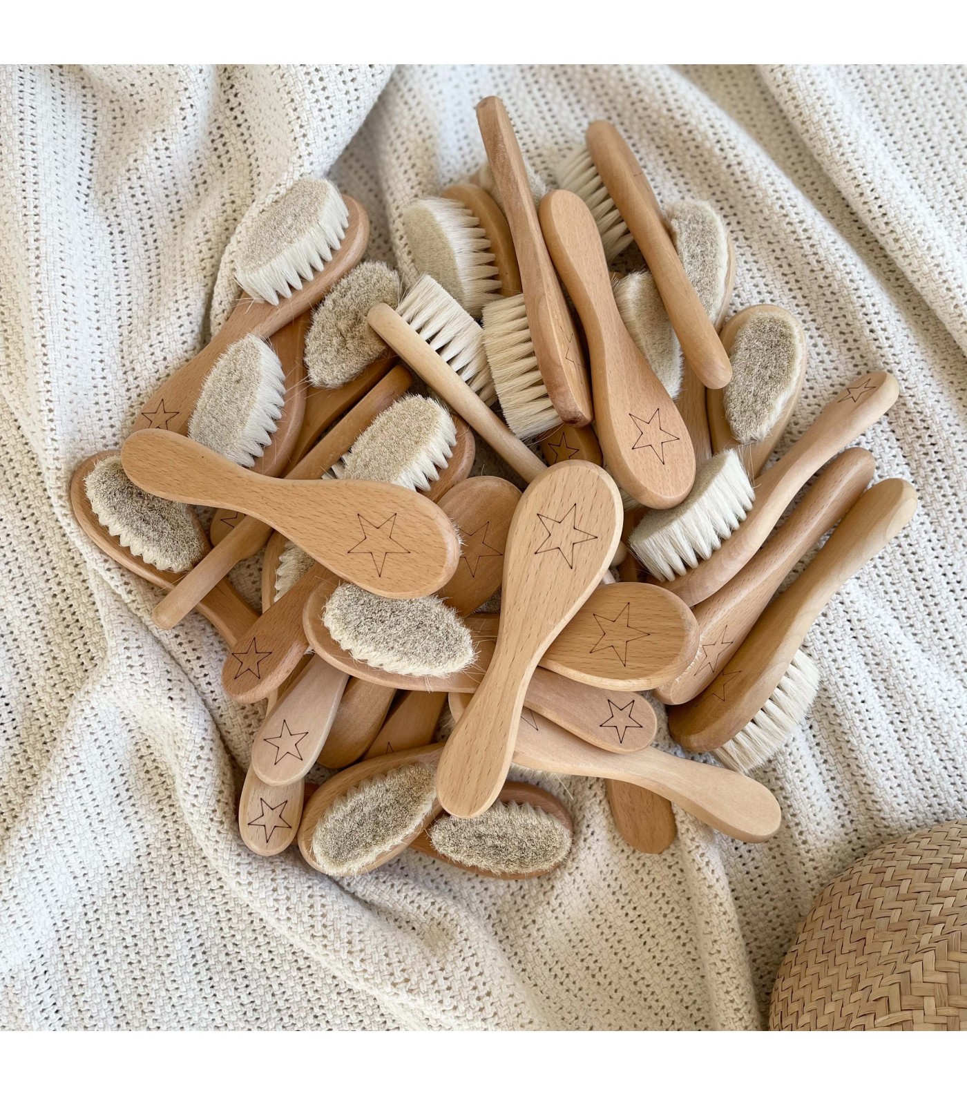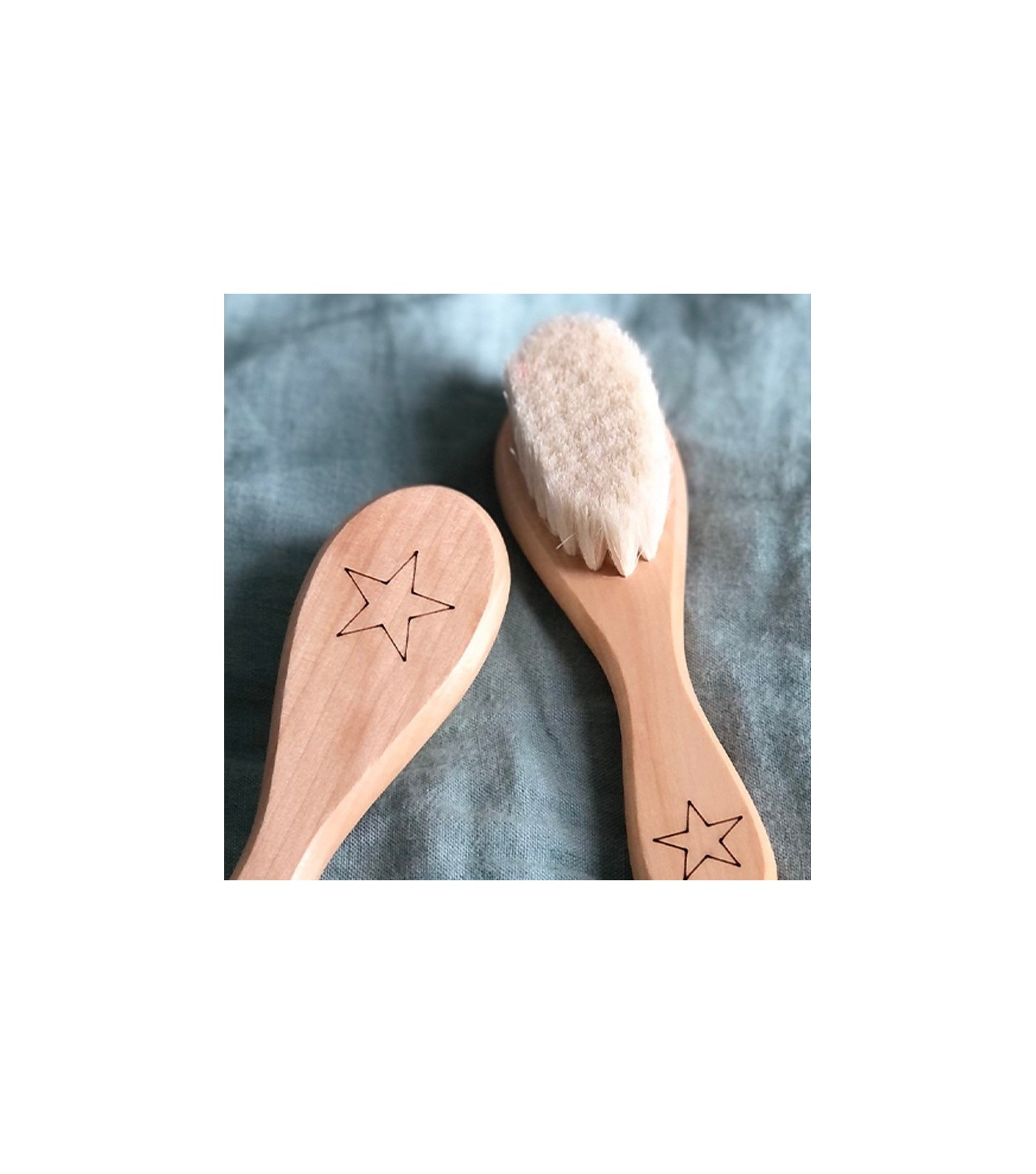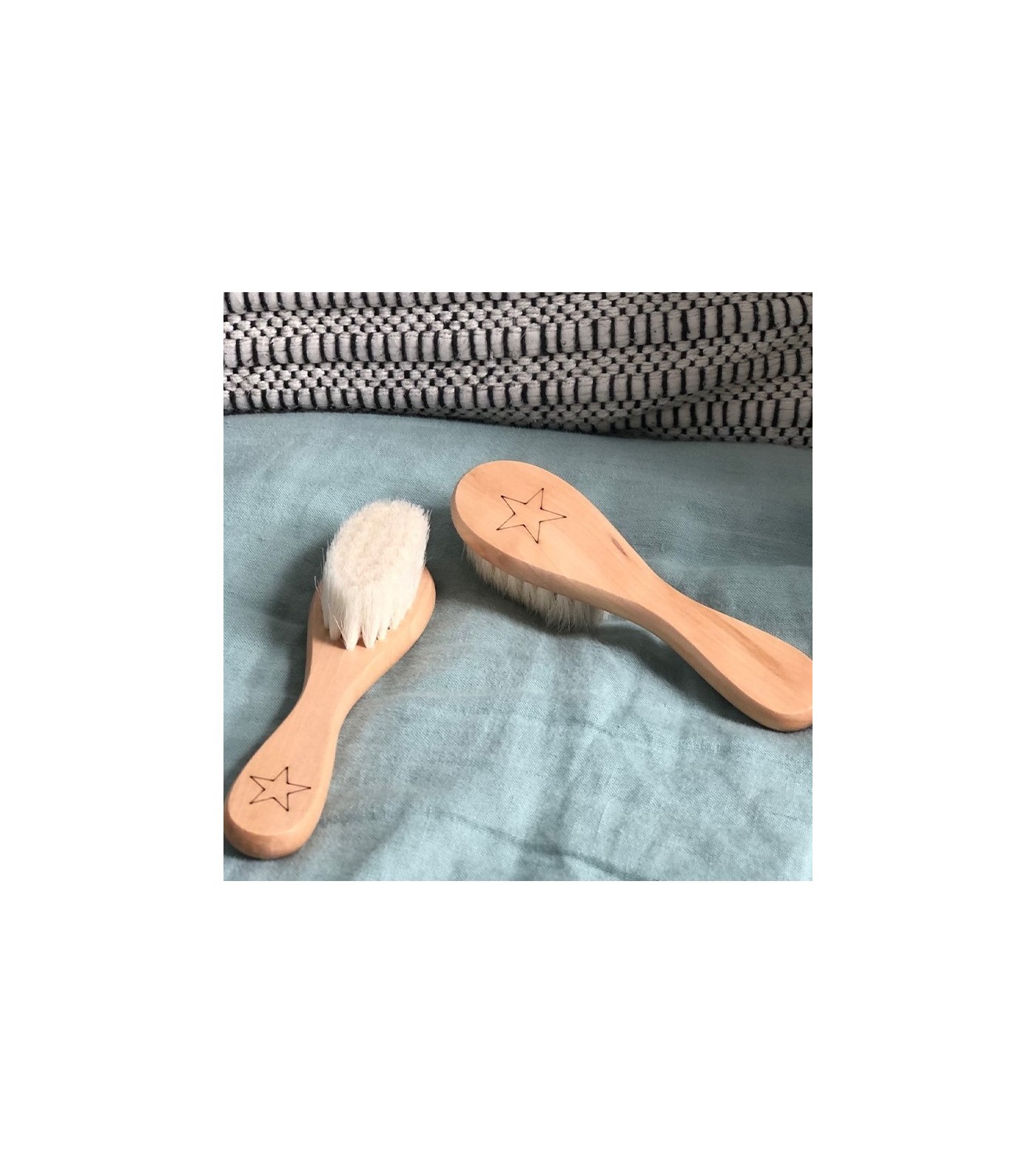 Le manche en bois de hêtre, et la brosse en soie de chèvre 100% naturelle, saura prendre soin du délicat cuir chevelu de votre nouveau-né.