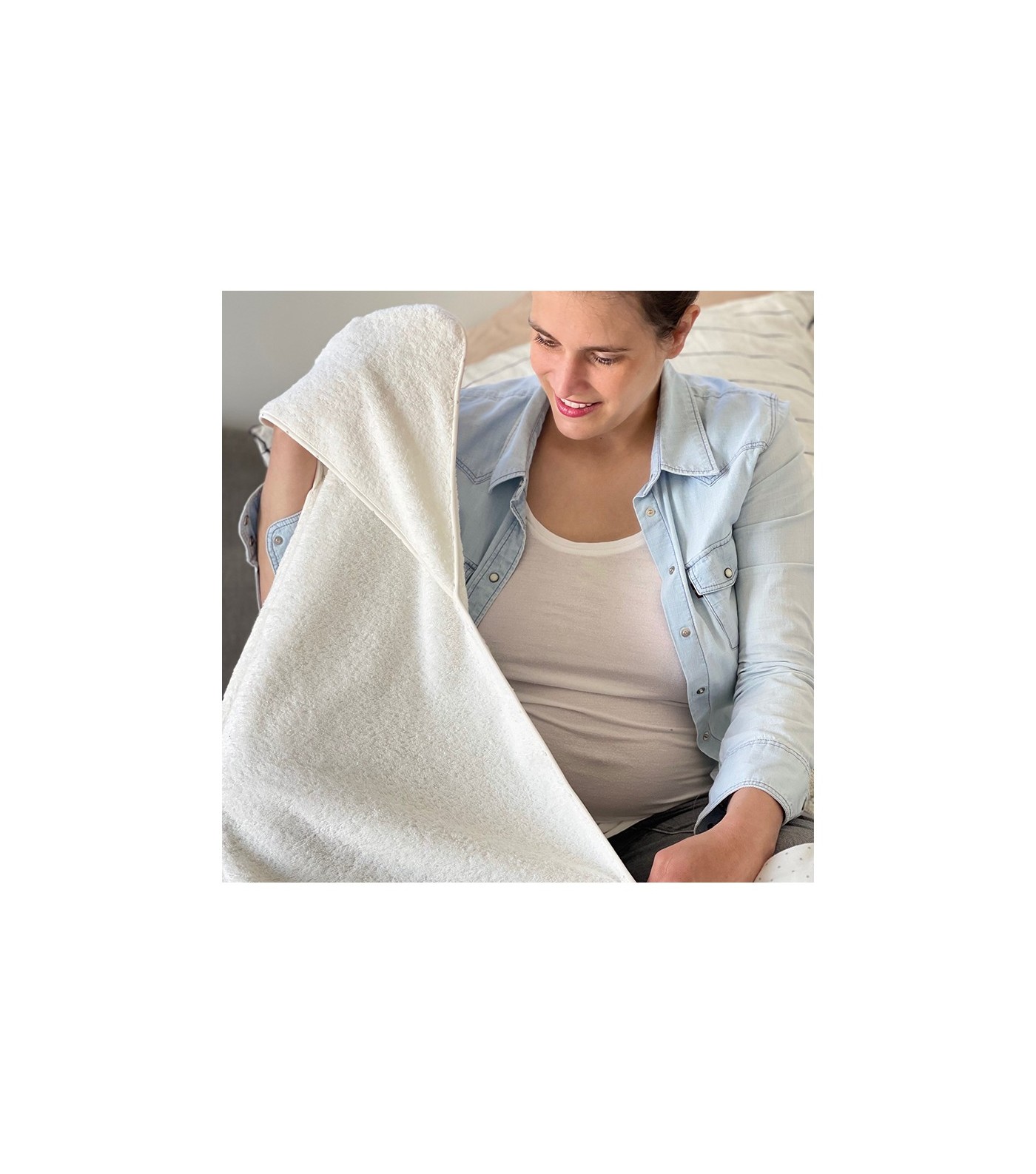 Fabriquée en éponge biologique de qualité supérieure, cette cape enveloppante assure une sensation de chaleur et de bien-être.