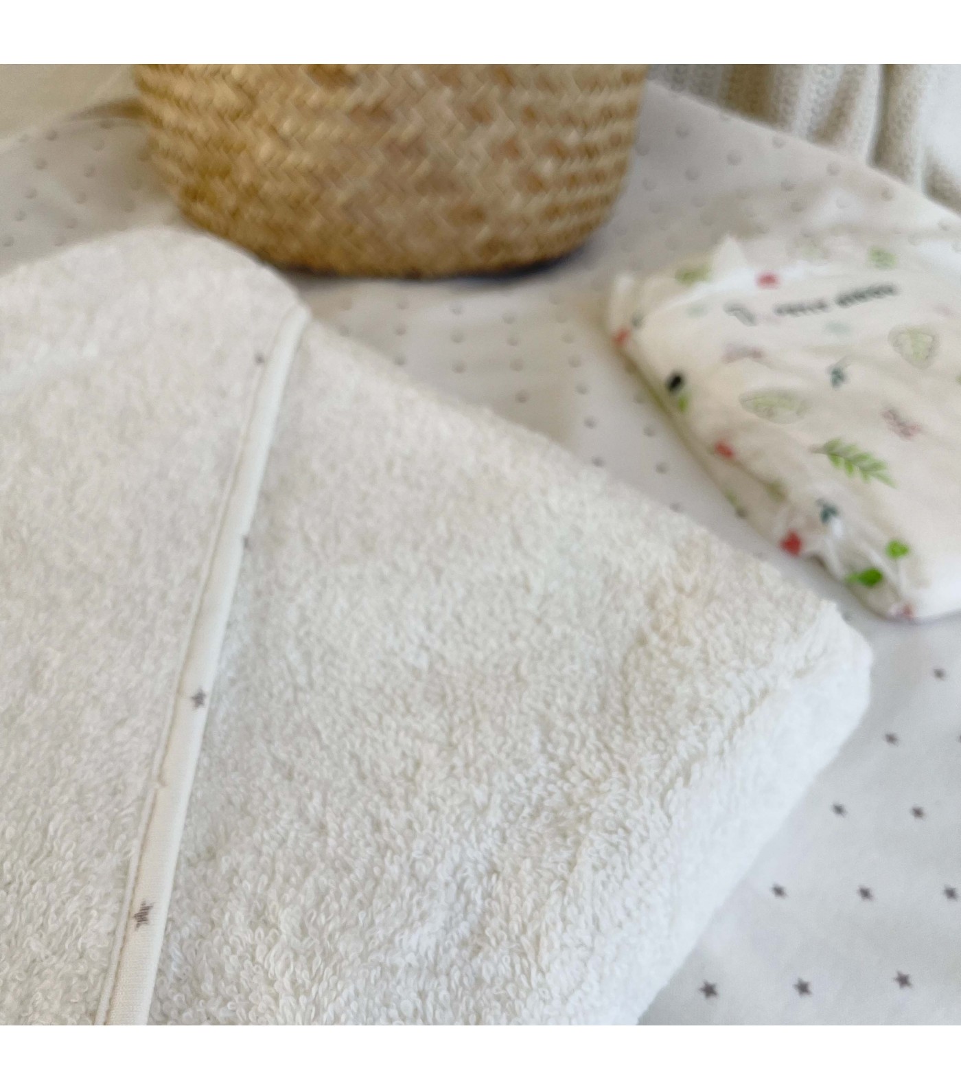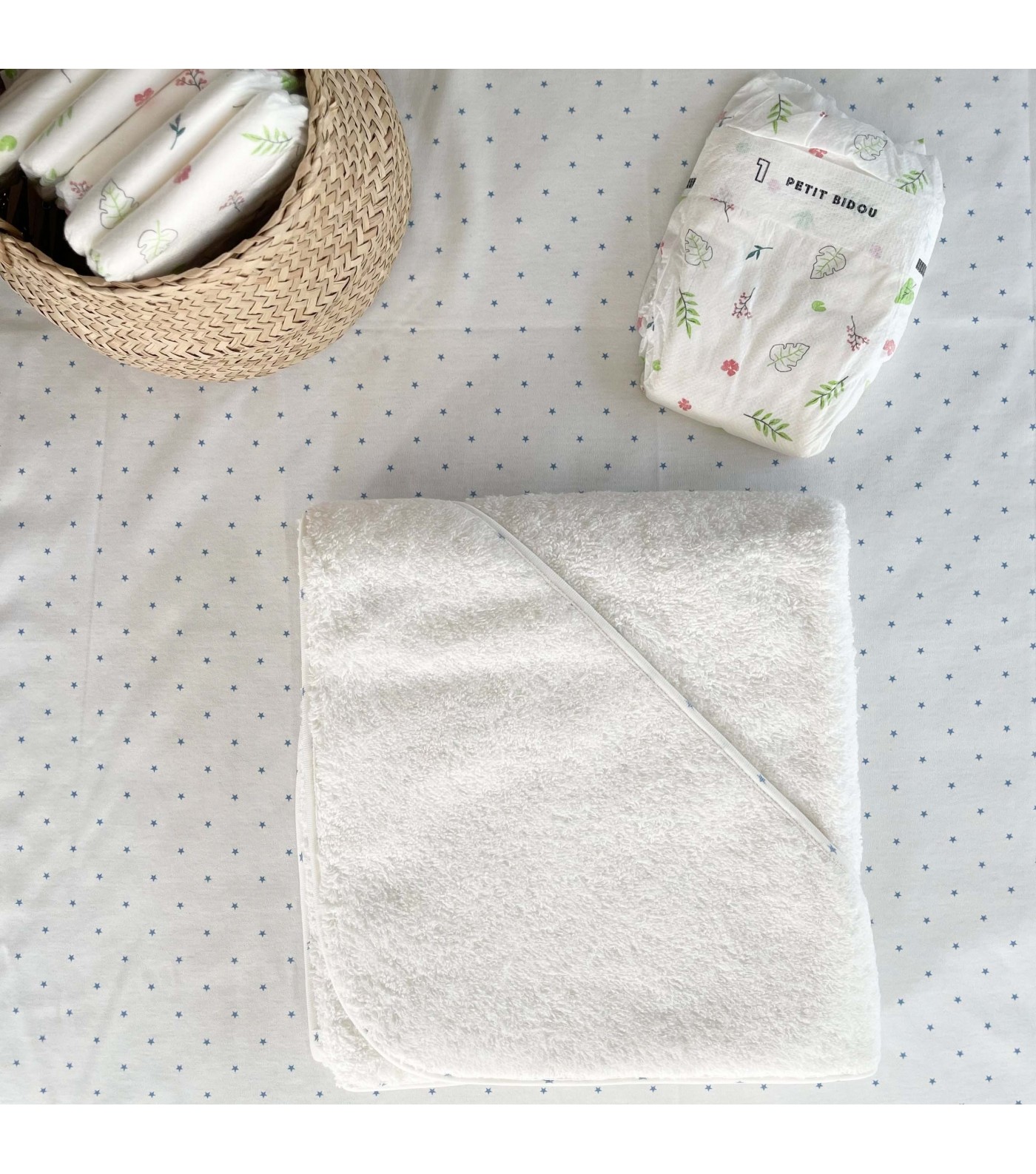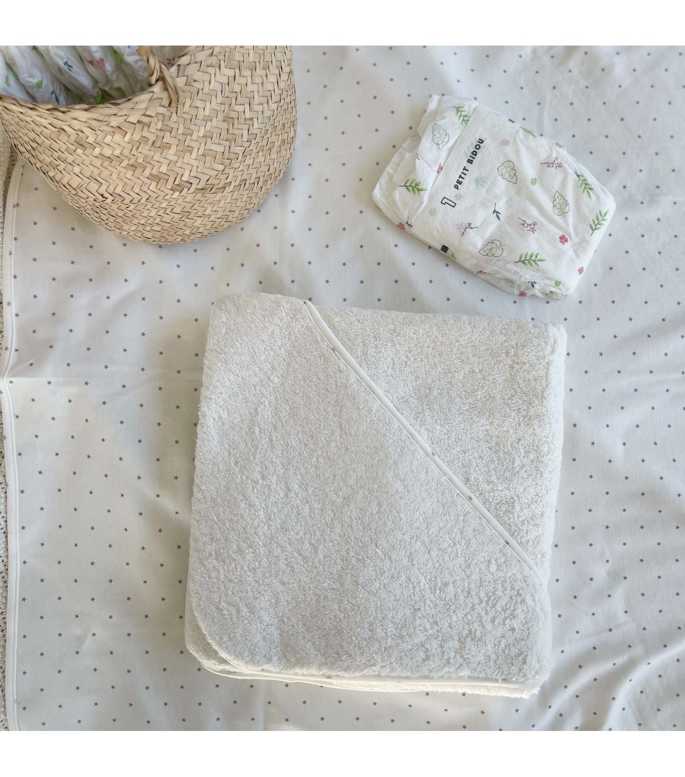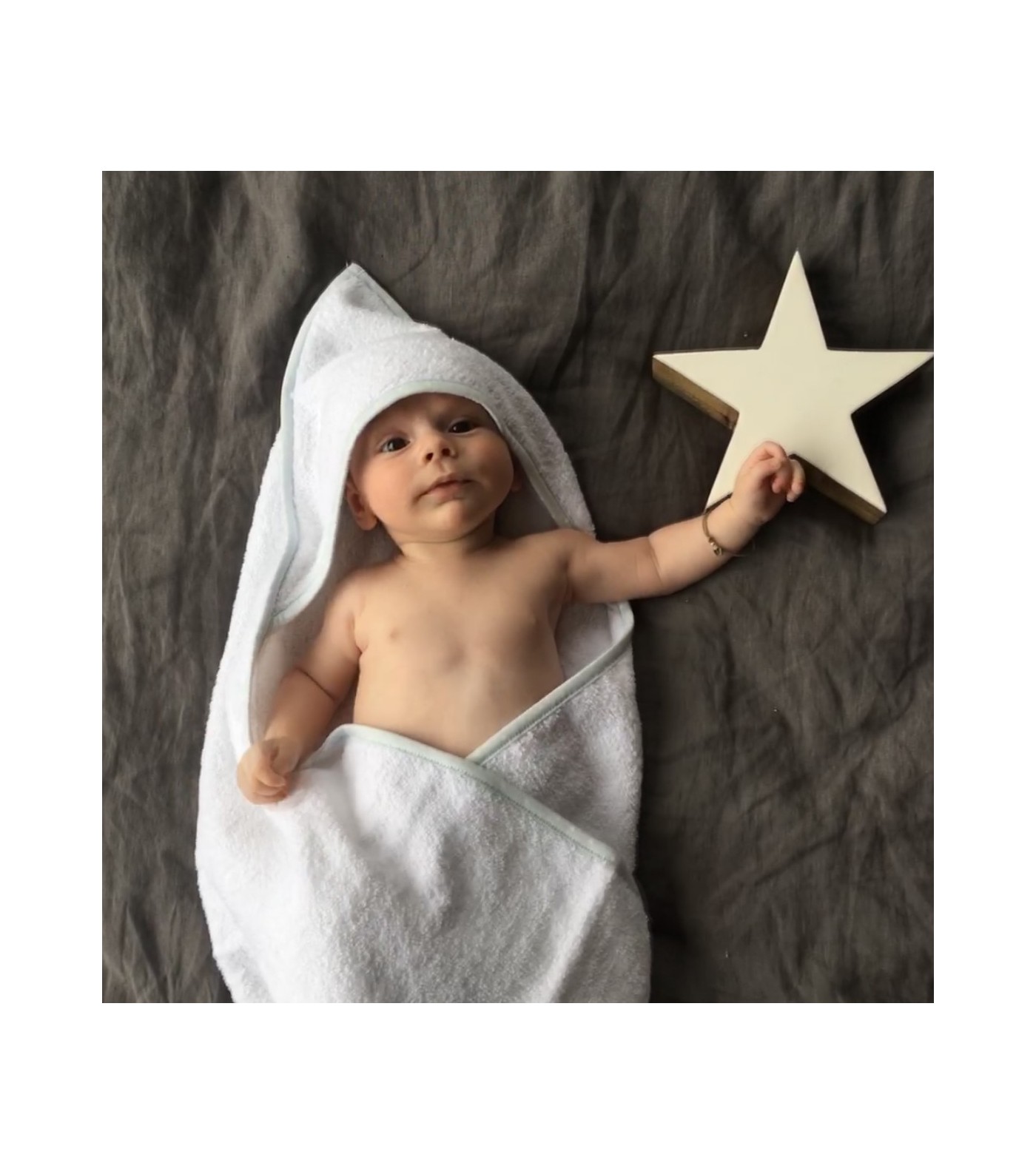 Ultra moelleuse, ultra confortable et ultra BIO, cette cape de bain en éponge saura envelopper chaudement votre bébé après le bain.