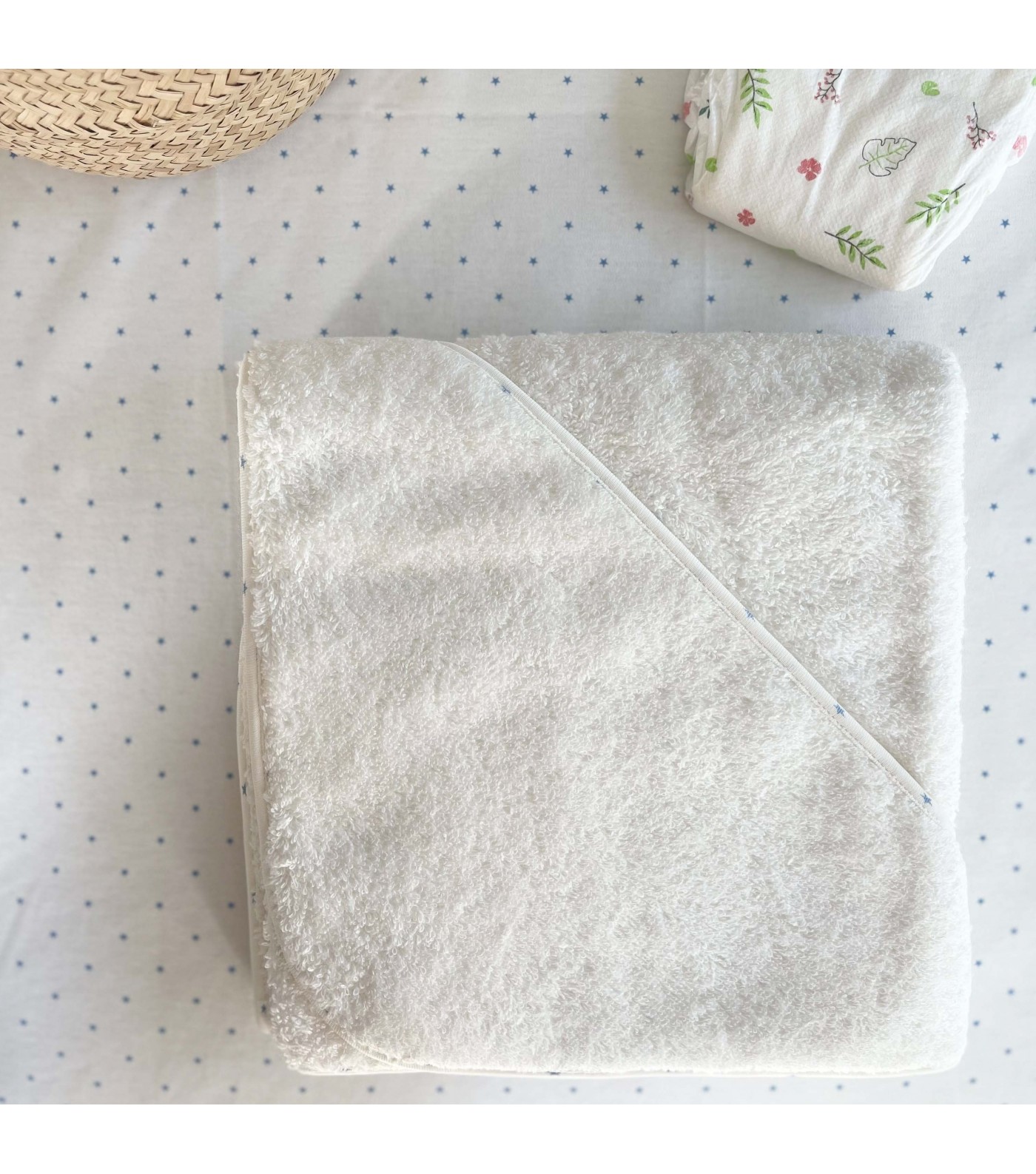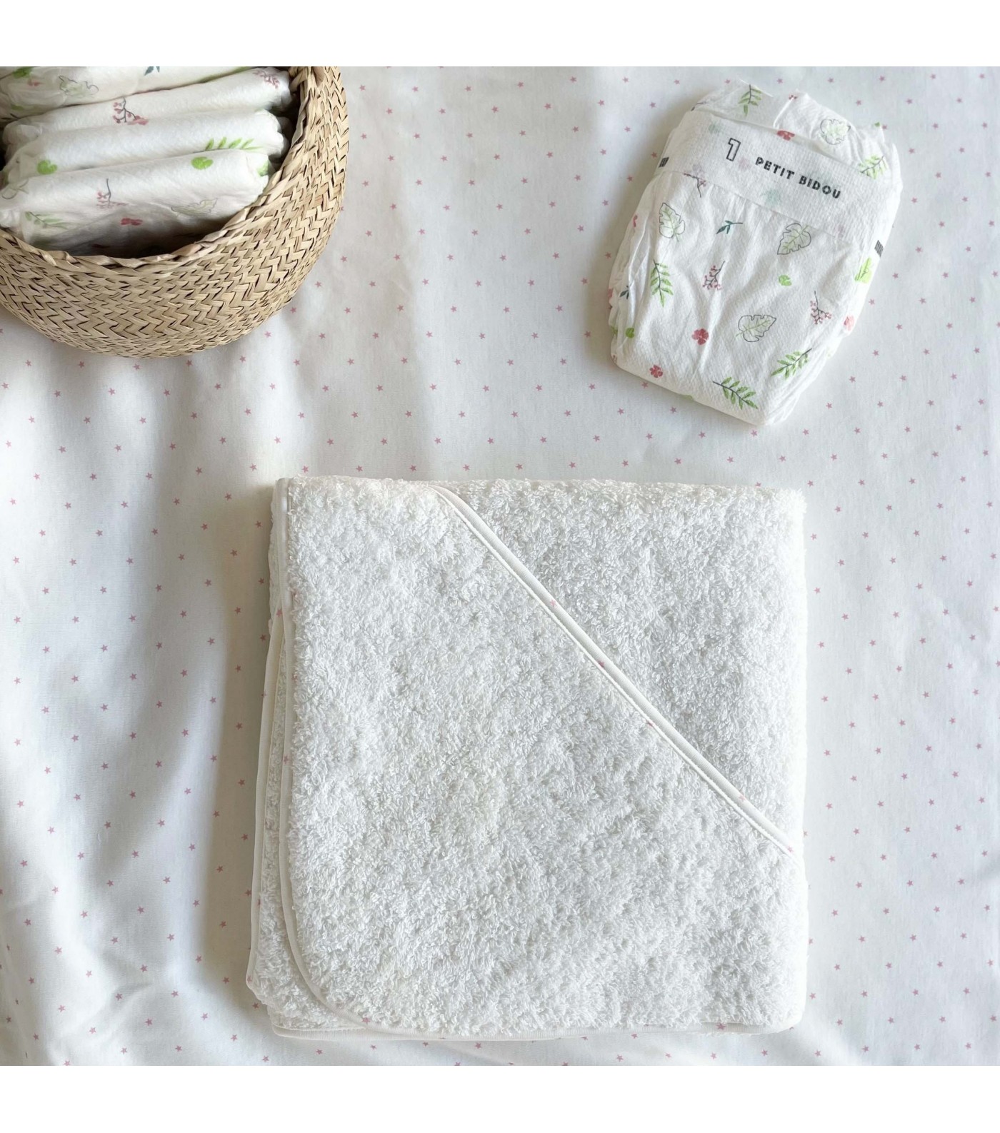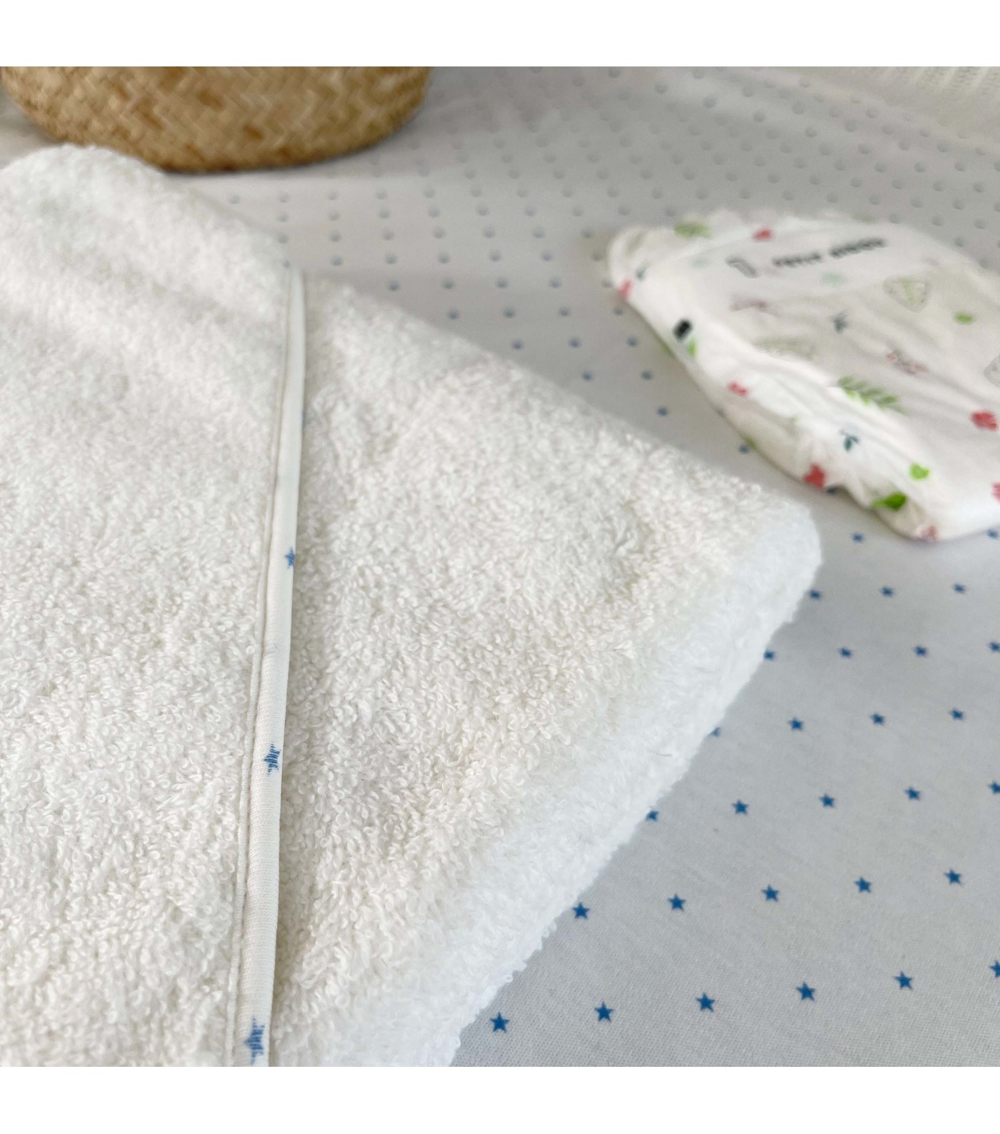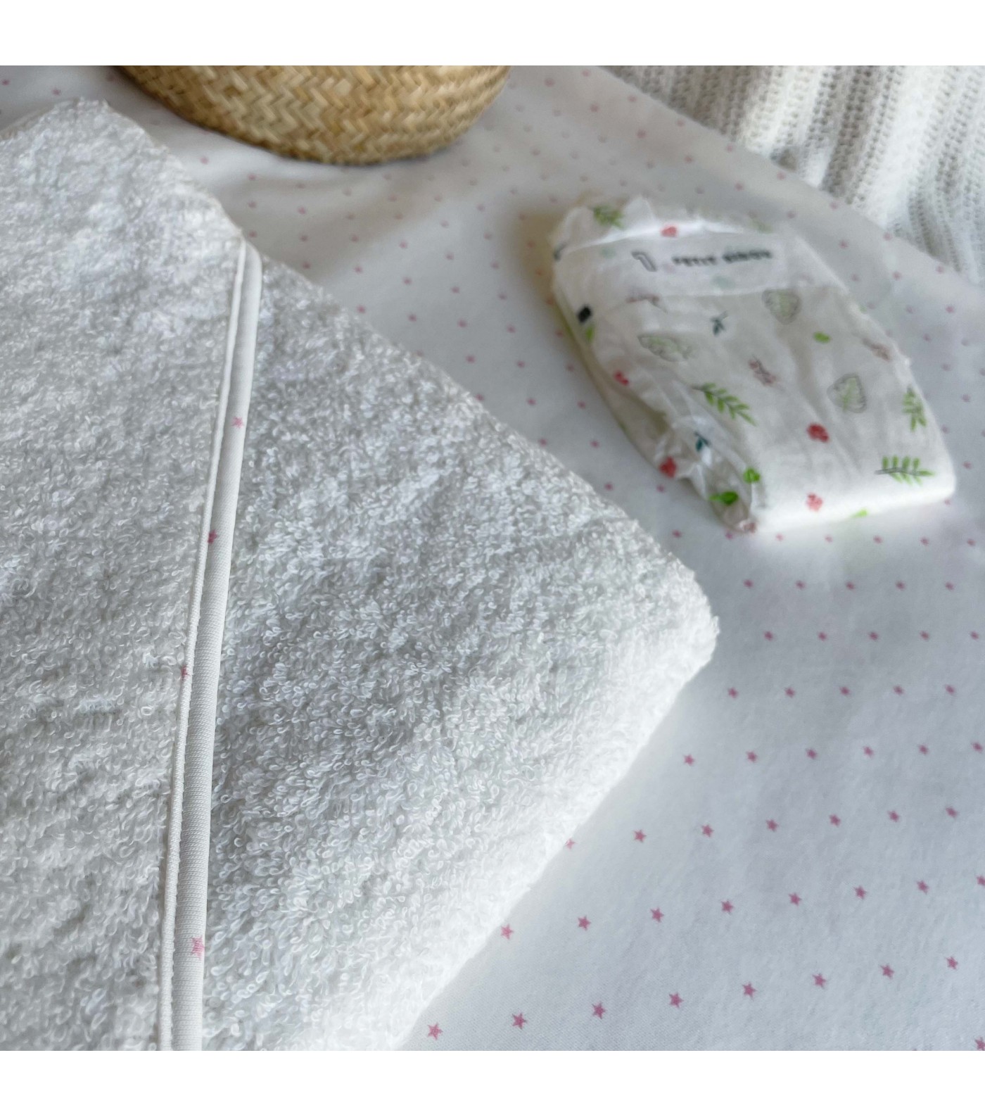 Ultra moelleuse, ultra confortable et ultra BIO, cette cape de bain en éponge saura envelopper chaudement votre bébé après le bain.