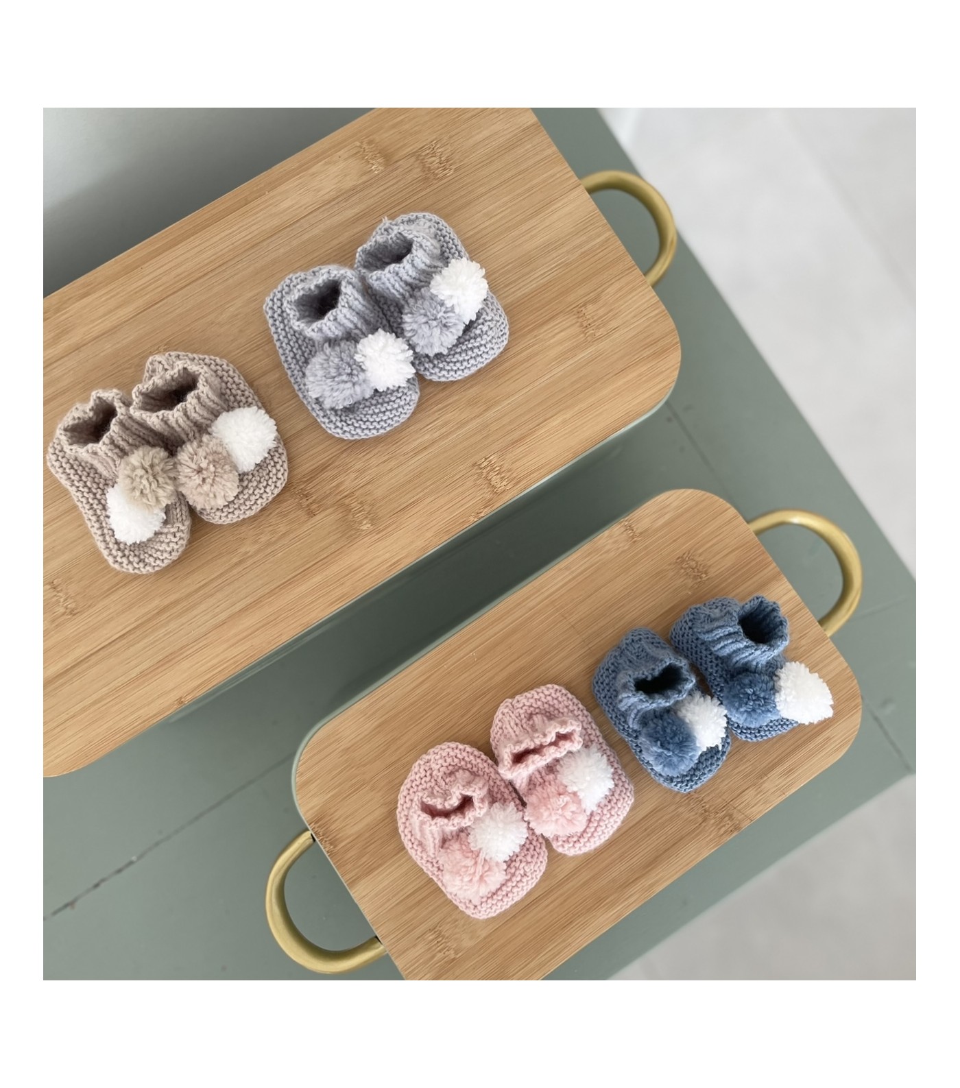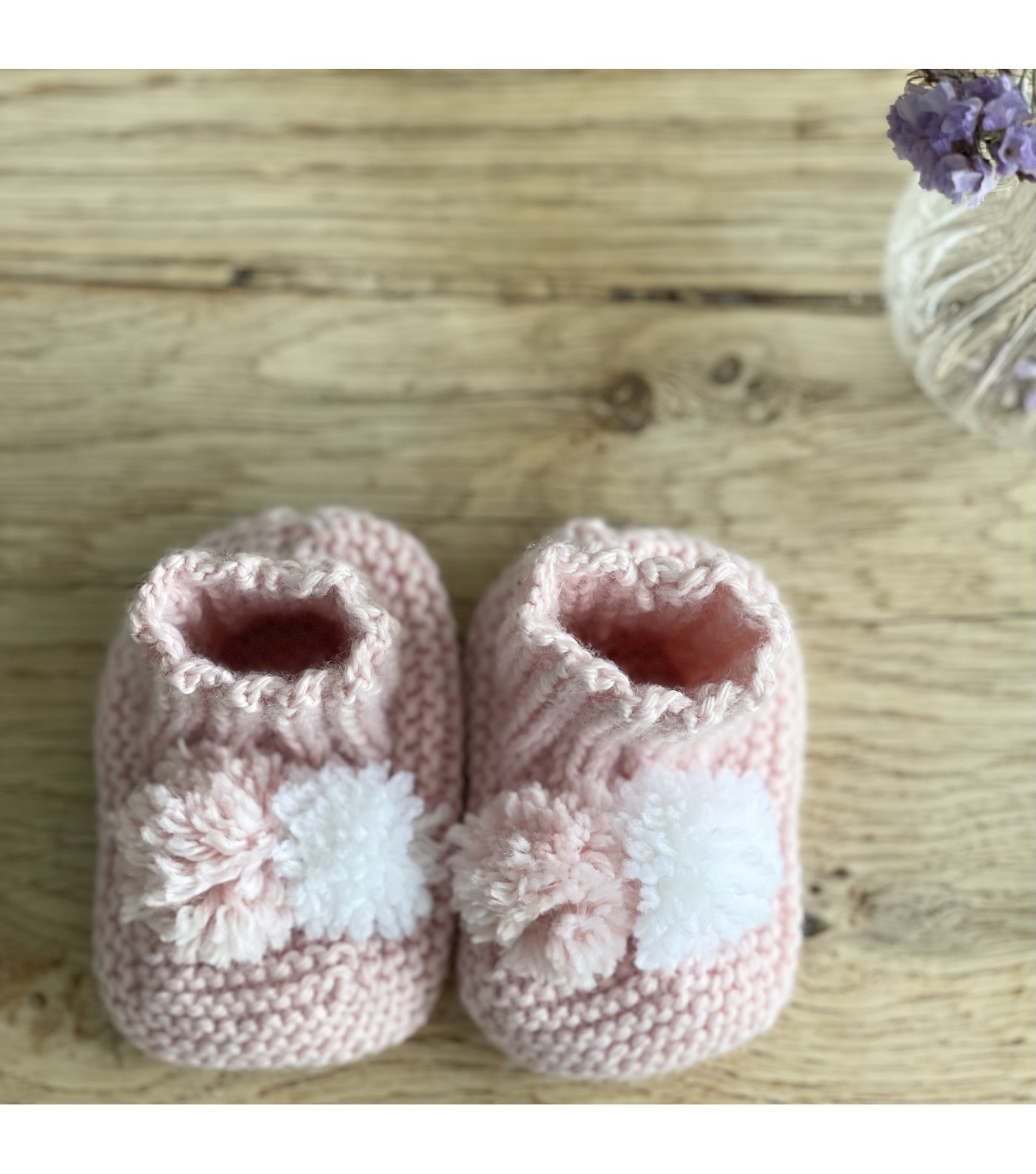 Faits main, ces jolis petits chaussons en tricot maintiennent les pieds de votre bébé au chaud.