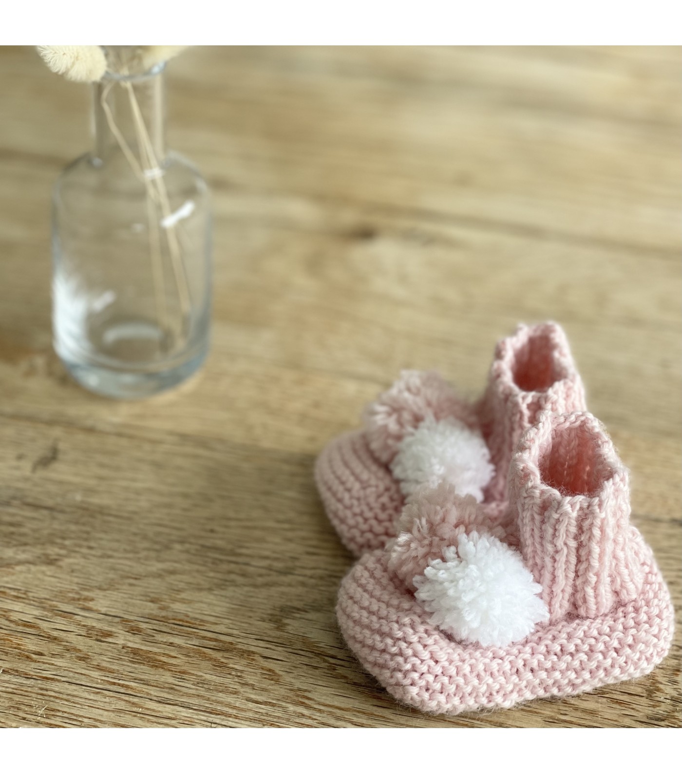 Faits main, pratiques et douillets, ces Chaussons en Tricot Rose sont le choix idéal pour les premiers pas de votre tout-petit.