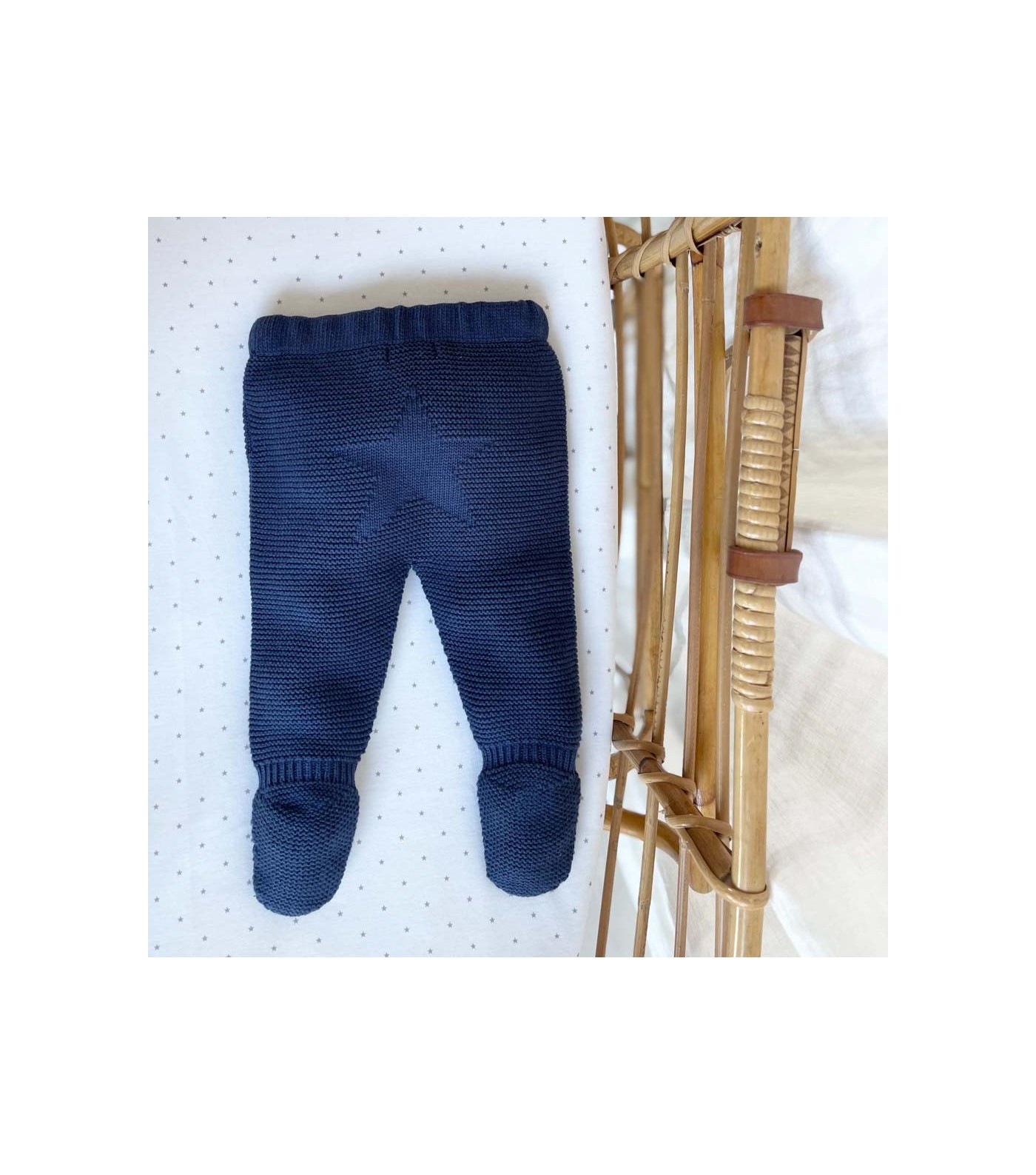 Le pantalon bébé, en 20% de laine et 80% de coton, est très tendance avec son étoile en maille retournée sur les fesses.