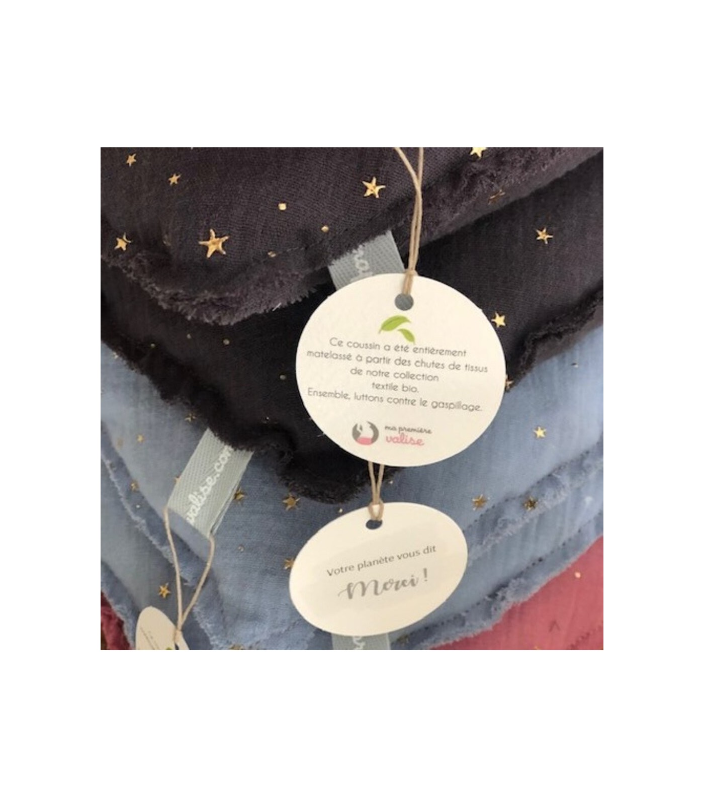 Entièrement matelassé à partir de chutes de tissus de notre collection textile bio, ce coussin préserve un peu plus la Planète.