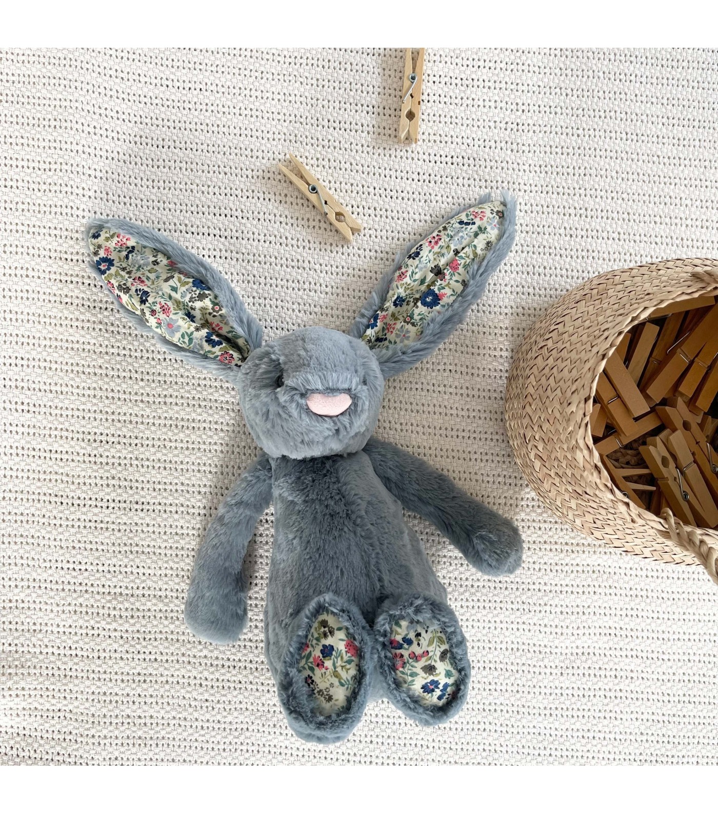 Offrez à votre bébé le doux réconfort du doudou lapin bleu pétrole liberty, une touche d'élégance et de tendresse pour accompagner les moments précieux de l'enfance.