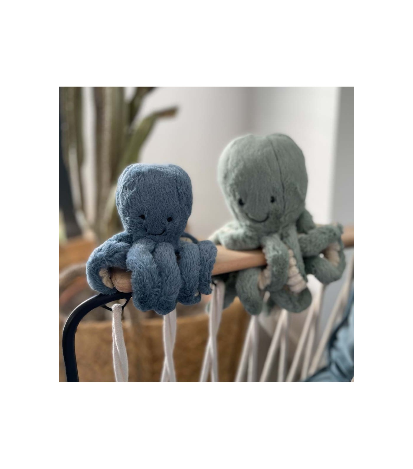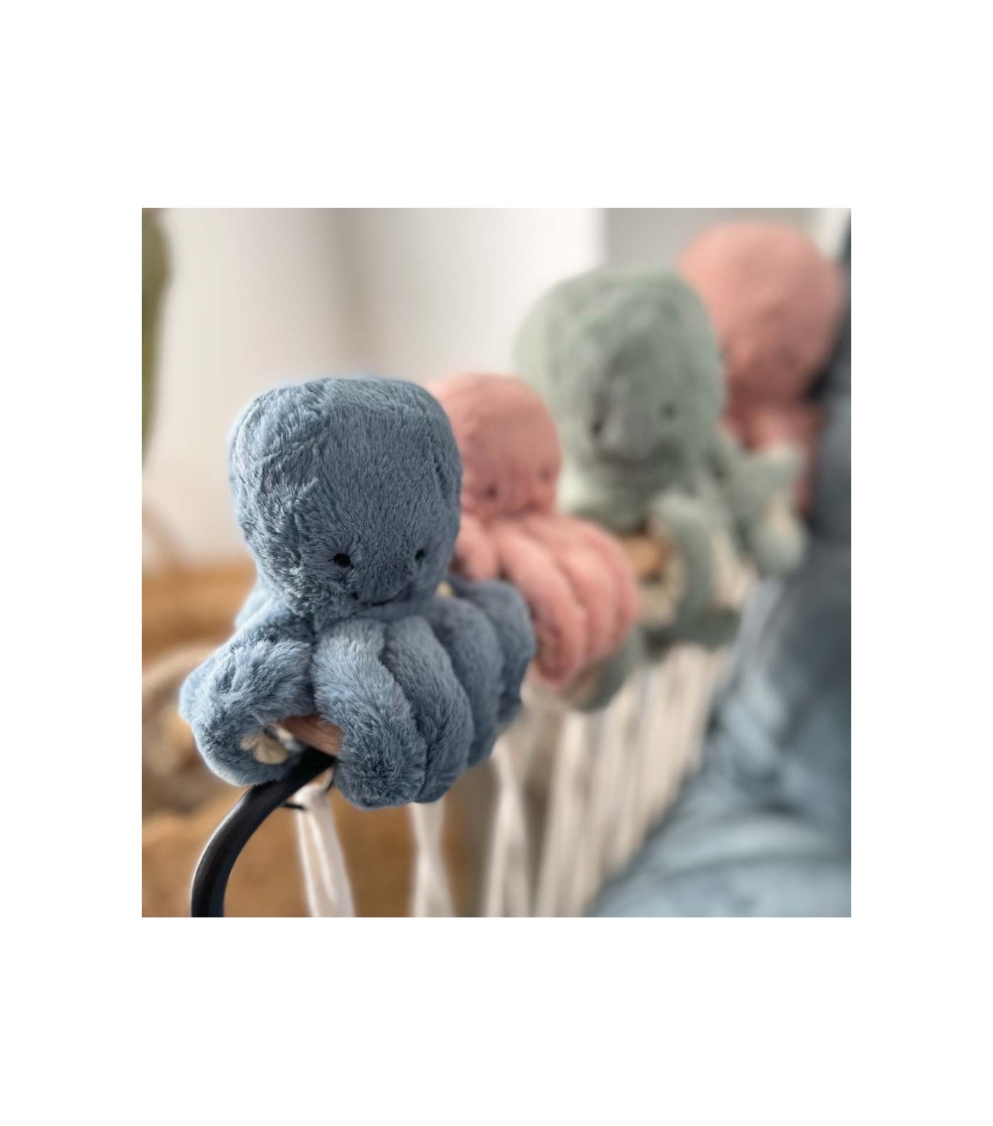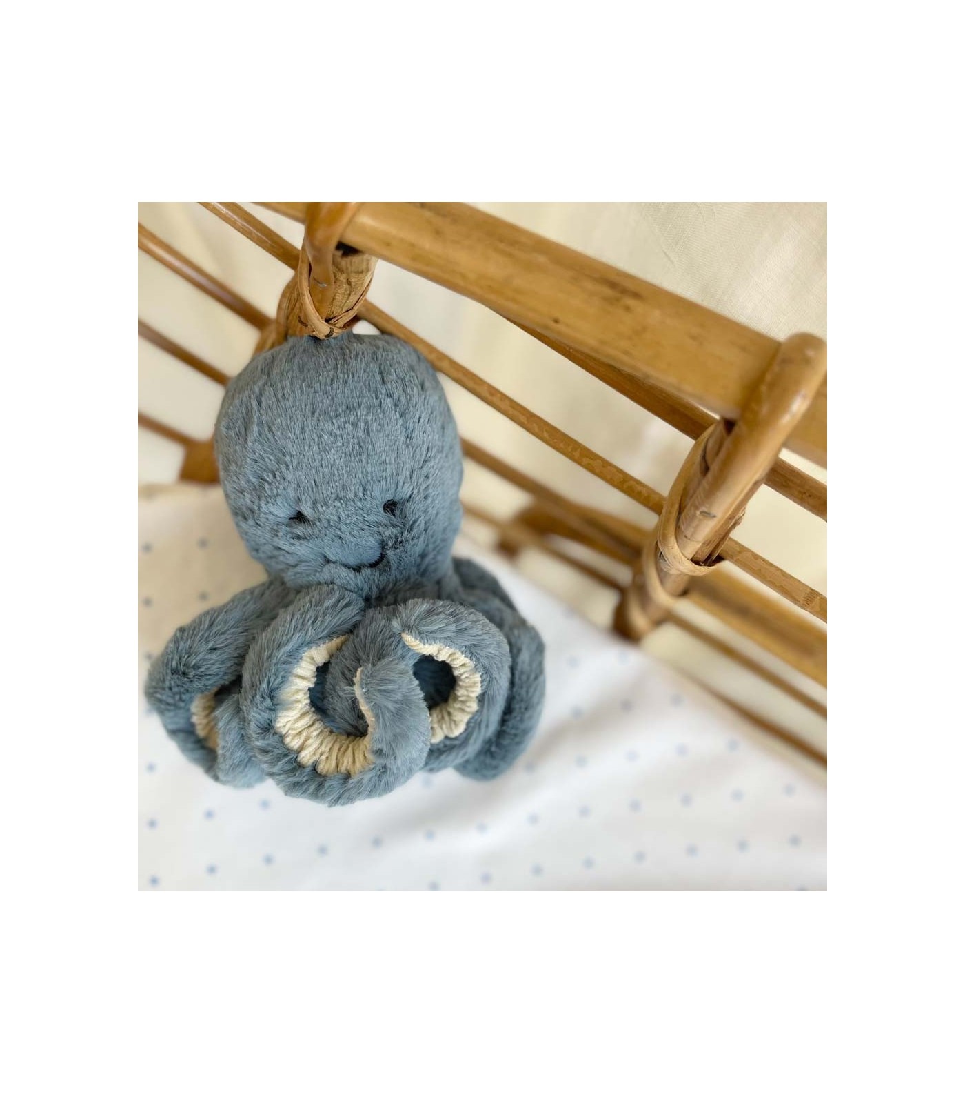 Offrez à votre nouveau-né le cadeau idéal avec la peluche pieuvre bleu pétrole. Non seulement elle deviendra son compagnon quotidien, mais elle apportera également du réconfort.