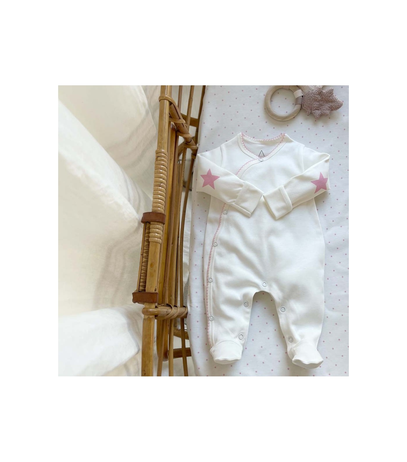 Offrez à votre Bébé Douceur et Élégance : Commandez Votre Pyjama Fin en Coton Bio avec Coudières Roses dès aujourd'hui !