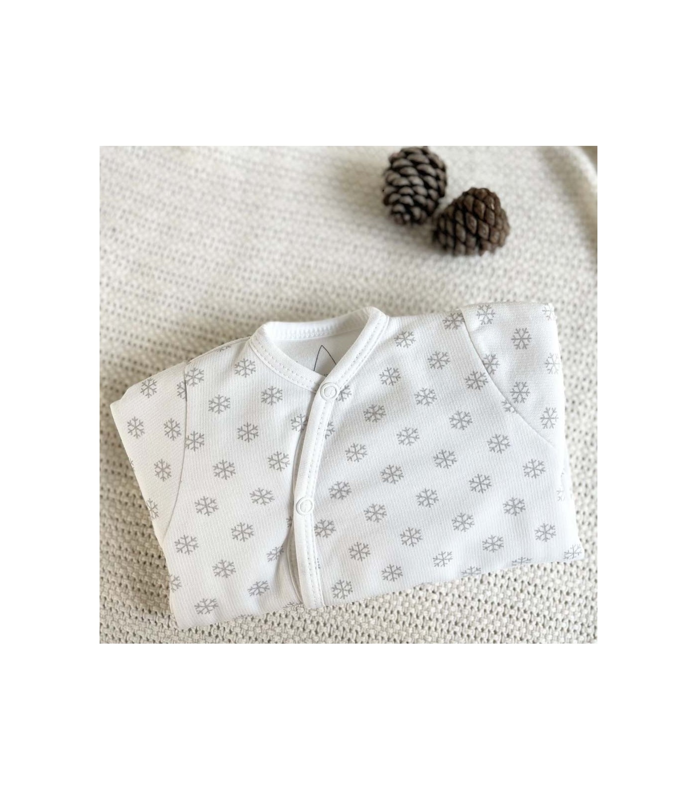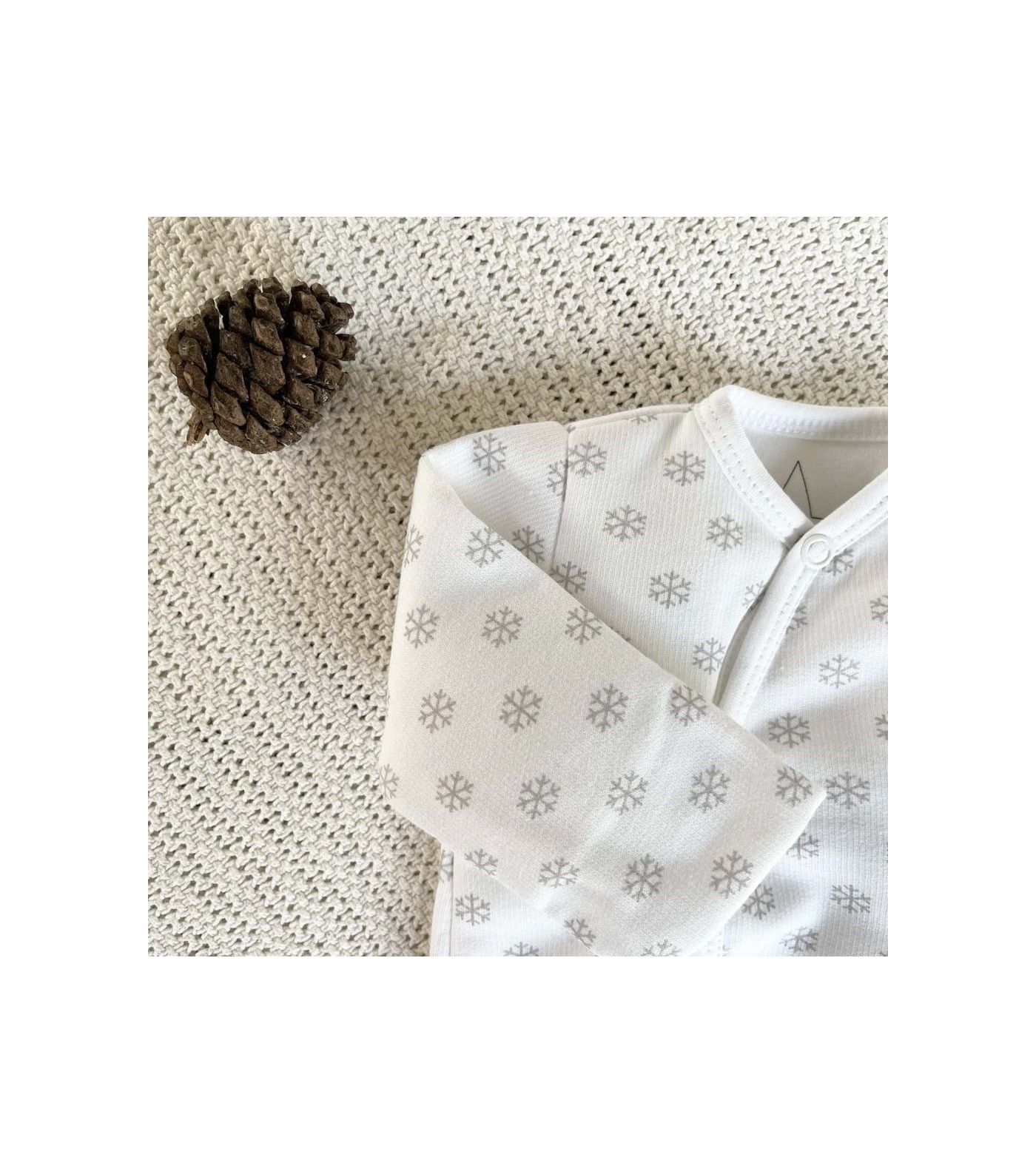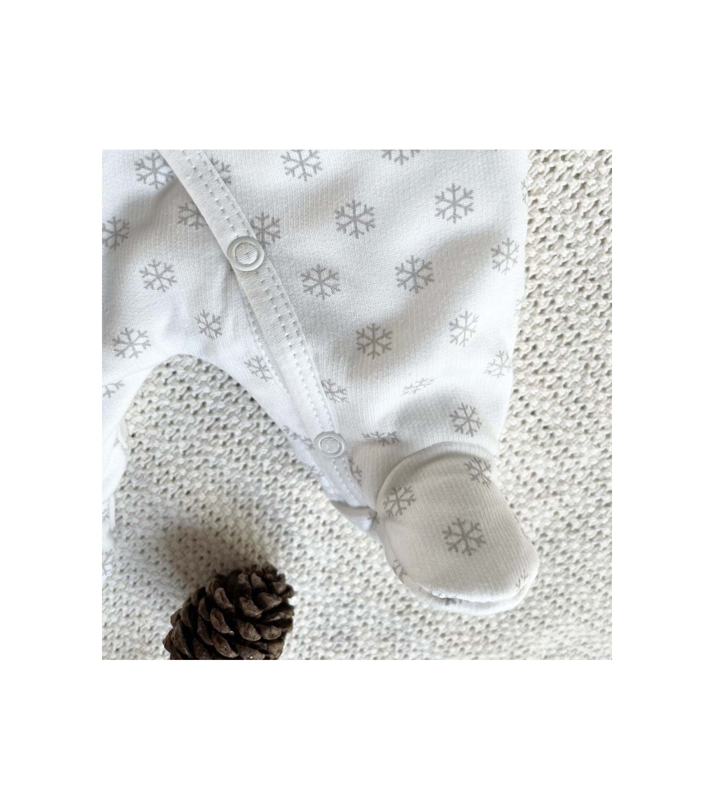Pour terminer, le motif de flocons gris ajoute une touche de charme hivernal, apportant style et gaieté aux vêtement de votre nouveau-né.