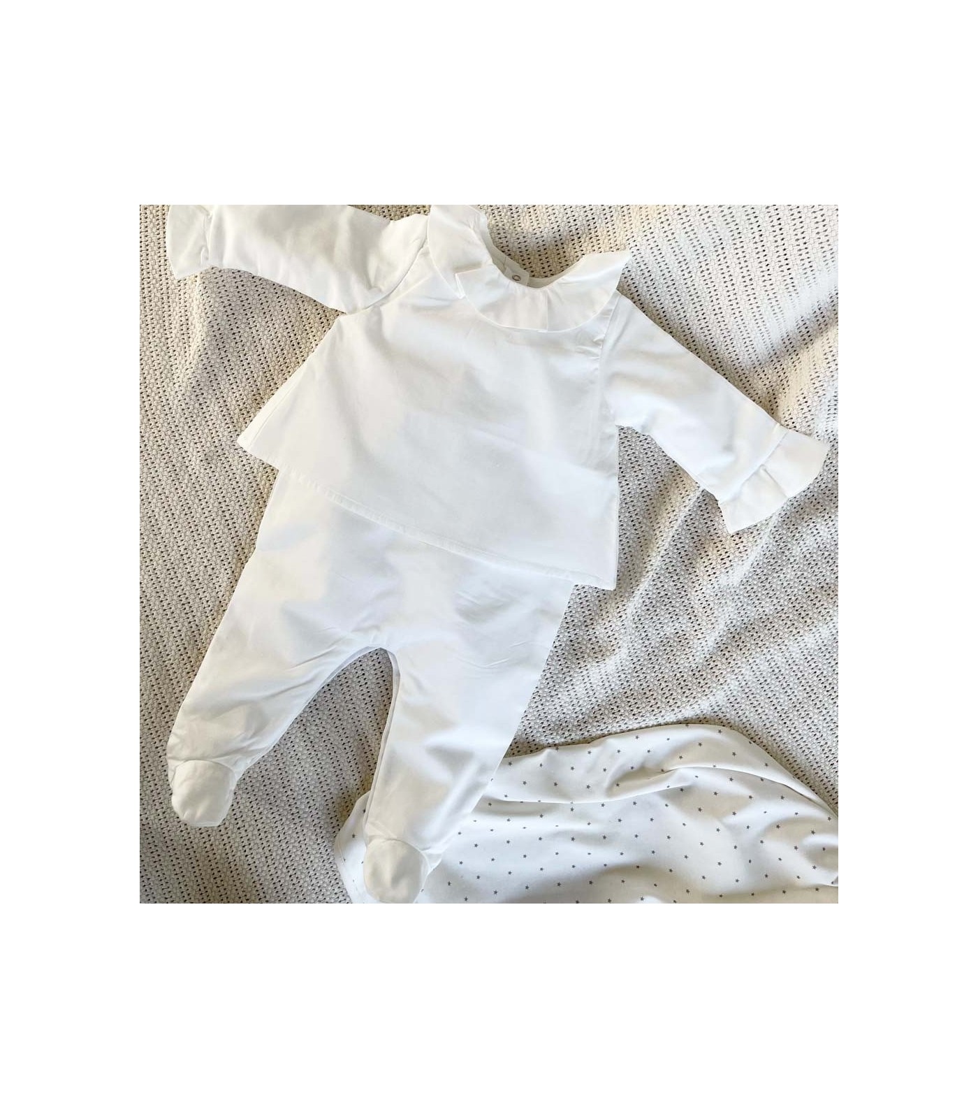 Bien plus qu'une simple tenue, ce pyjama se compose d'un chemisier et d'un pantalon fusionnés pour offrir confort et style à votre nouveau-né. Fabriqué à partir de coton bio à 100%, il est doux pour la peau délicate de votre bébé.